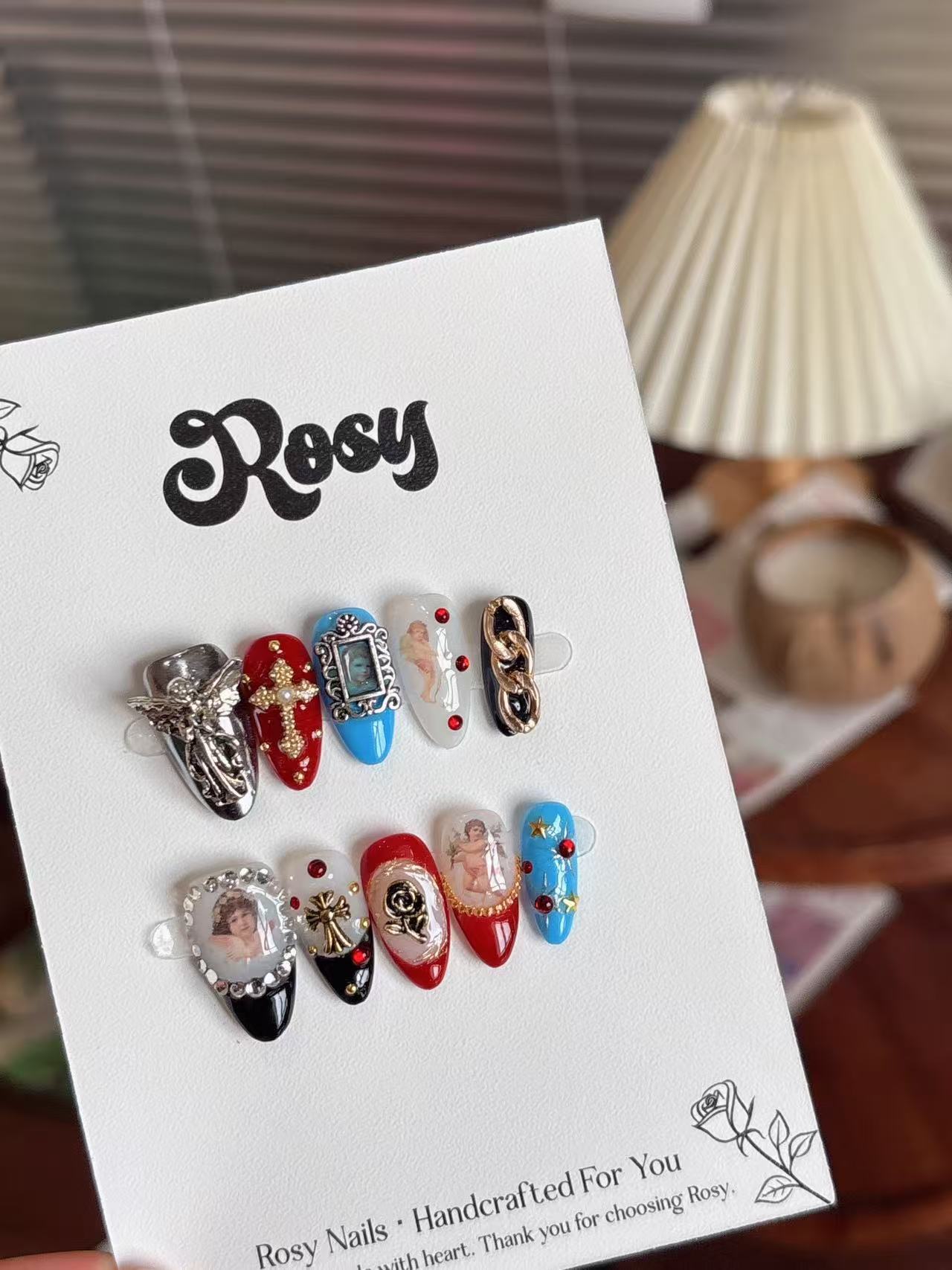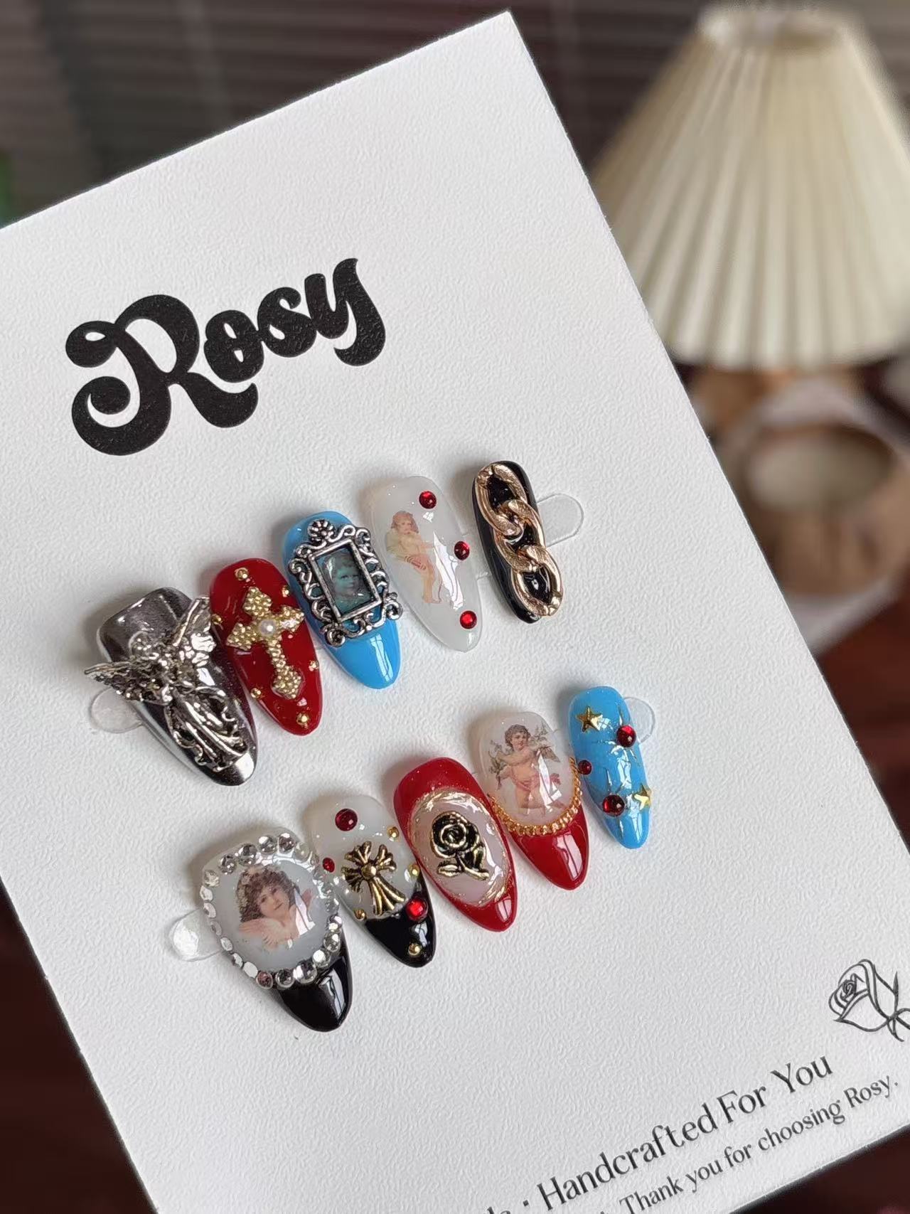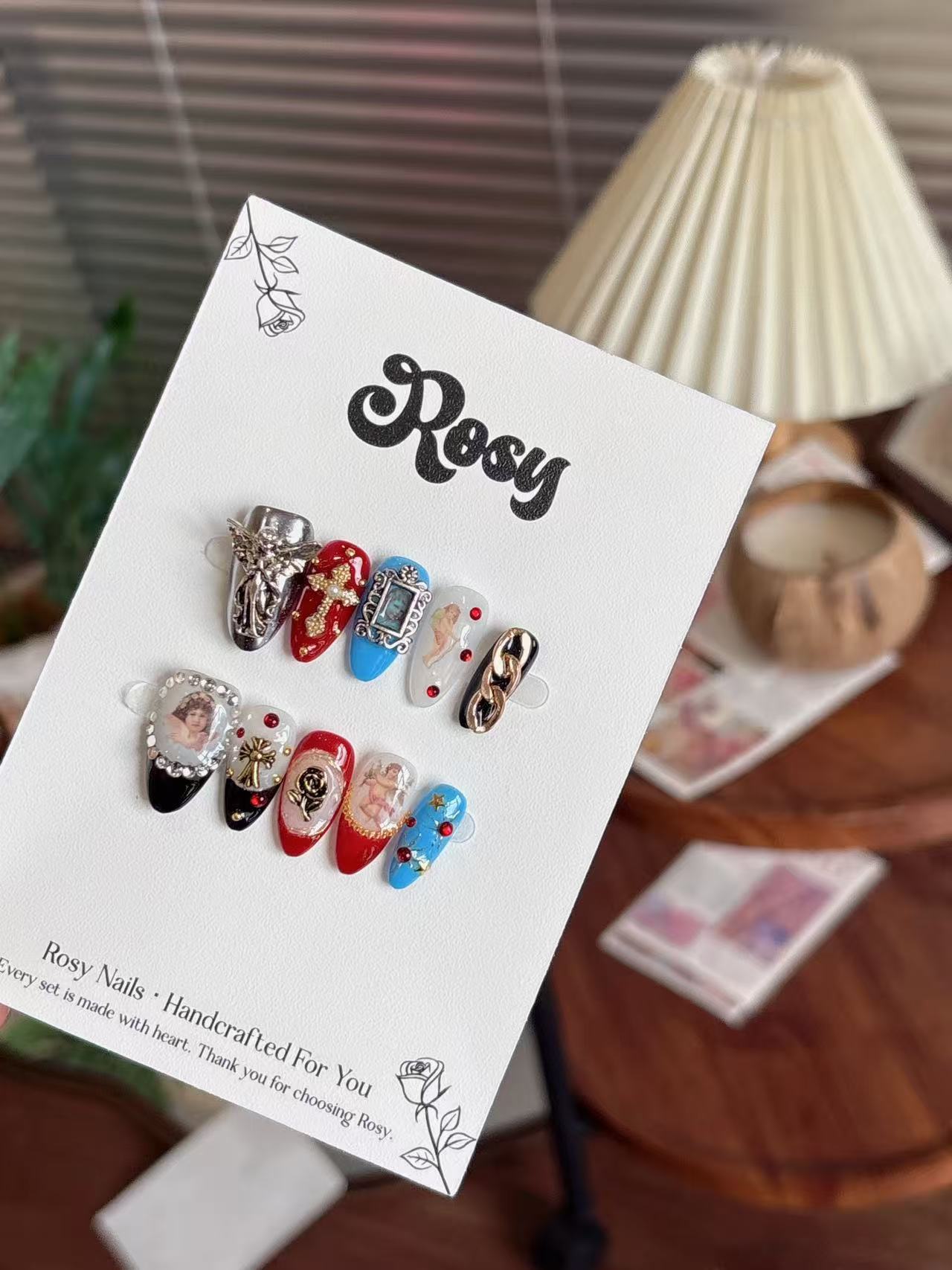 Rosy每副穿戴甲獨一無二,顏色深淺、紋路、飾品大小皆有少許差異
