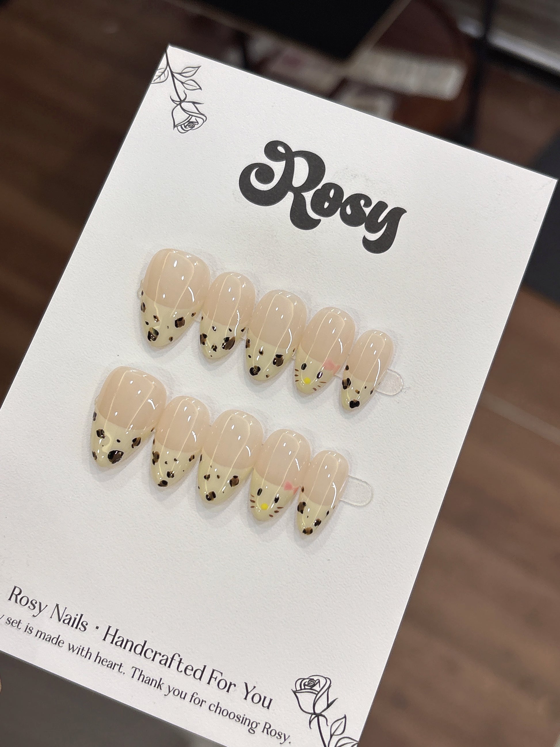 以奶油裸膚作底,指尖加入柔和奶黃與可愛豹紋點綴,