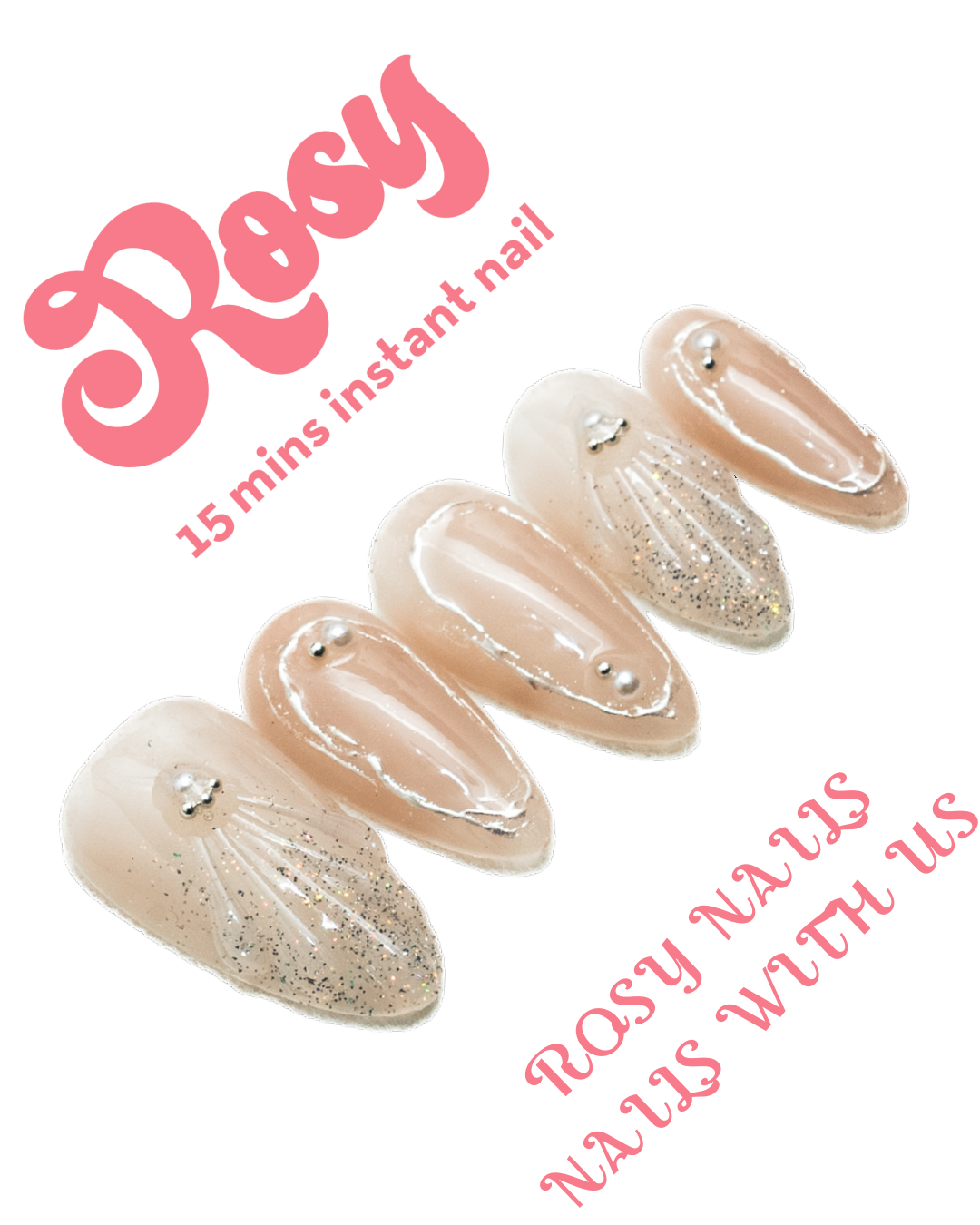 這款穿戴甲以精緻的貝殼設計為基調,搭配閃爍的金色亮片,帶來如暮光般柔和的光澤。指尖的珍珠與閃耀細節,讓你在任何場合都散發著夢幻般的魅力。✨💖
