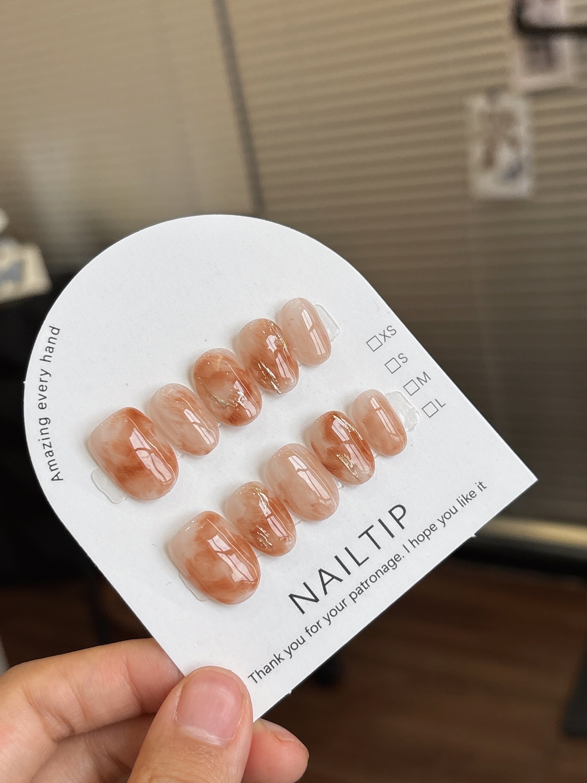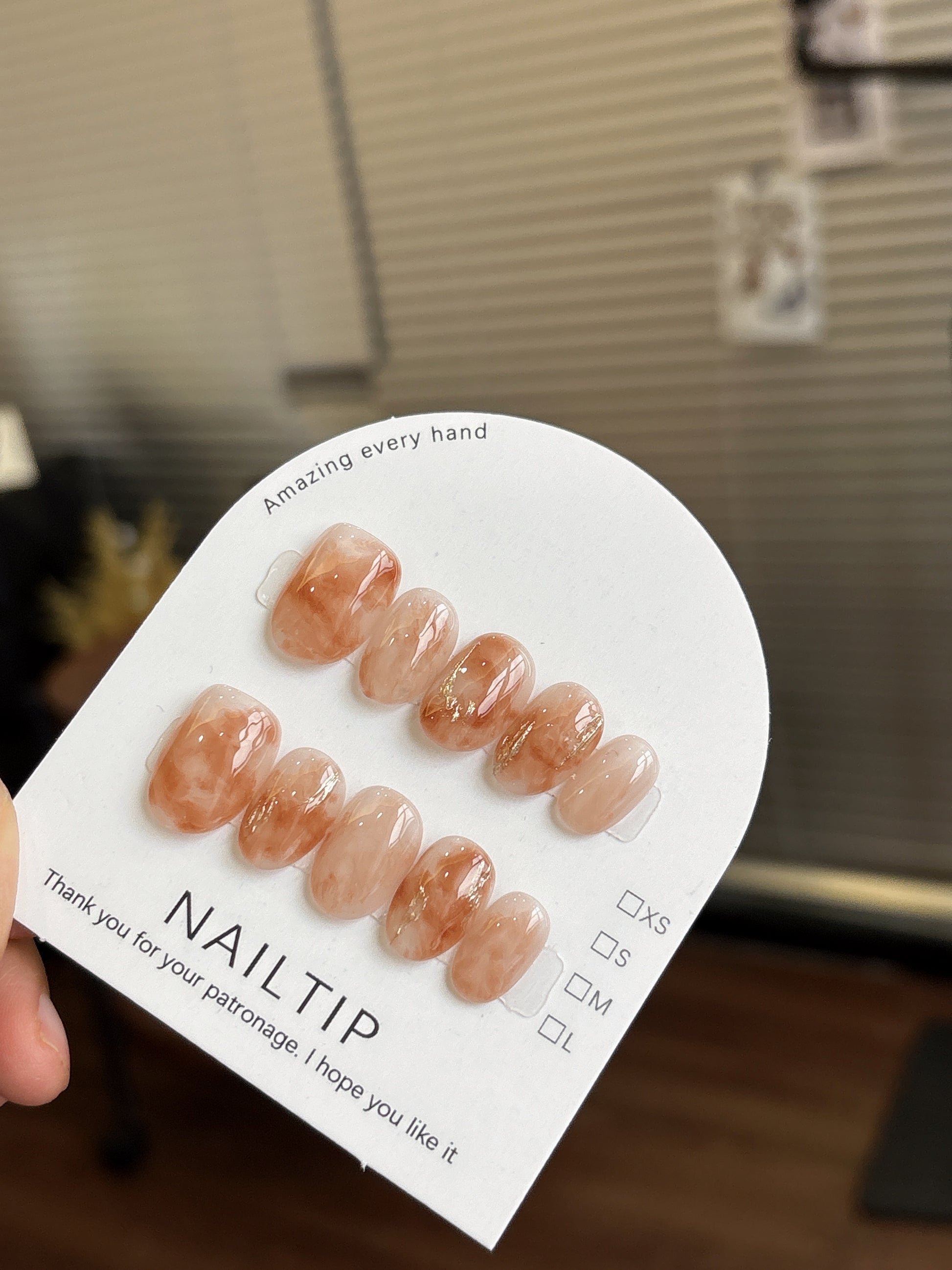 以溫暖楓紅色調為主體,融合石紋暈染與低調金箔細節,營造自然大地感的層次美。宛如楓葉輕落在岩石上的柔和軌跡,溫柔、耐看又充滿秋日氣息,適合氣質女孩日常配戴。