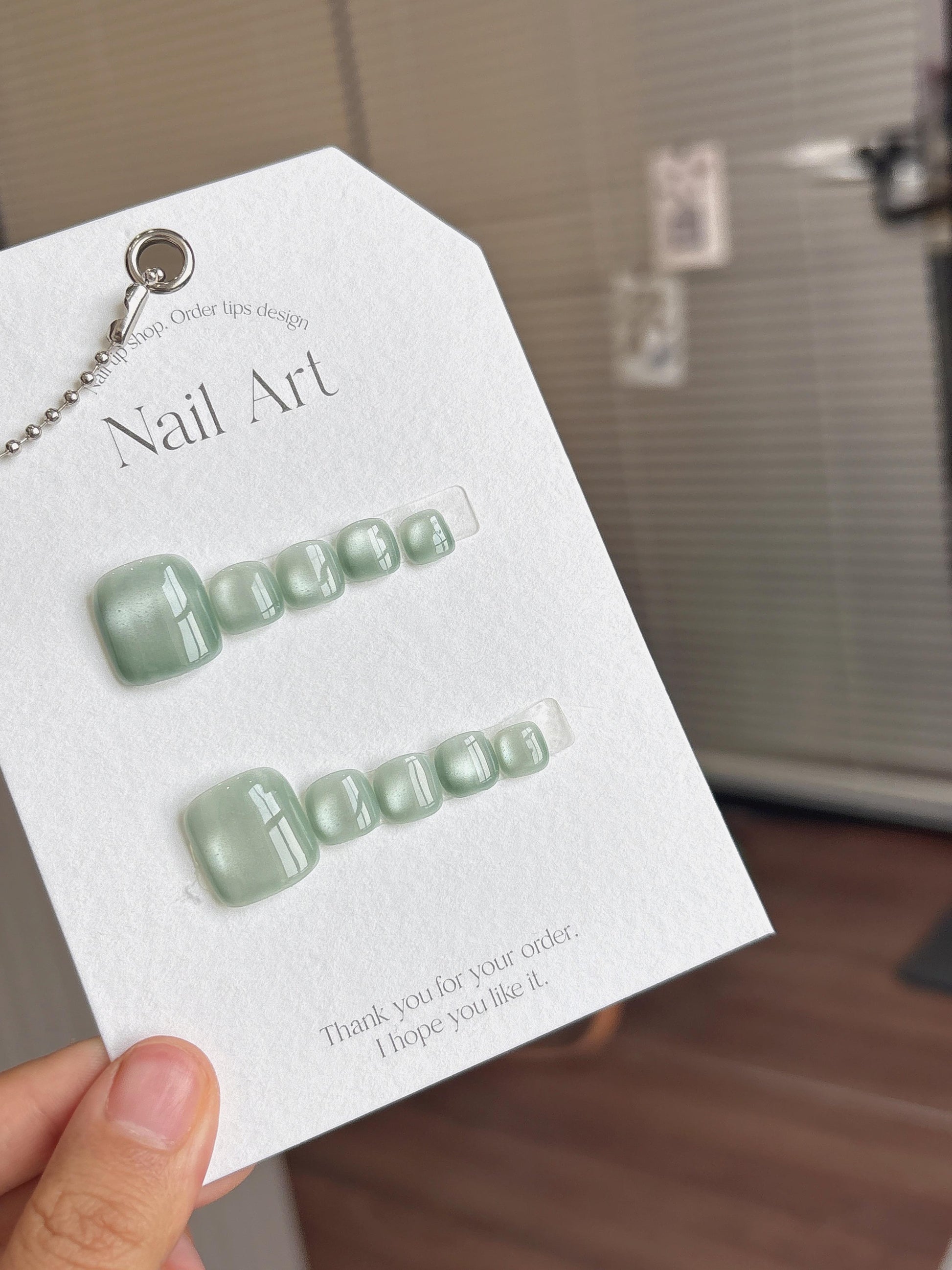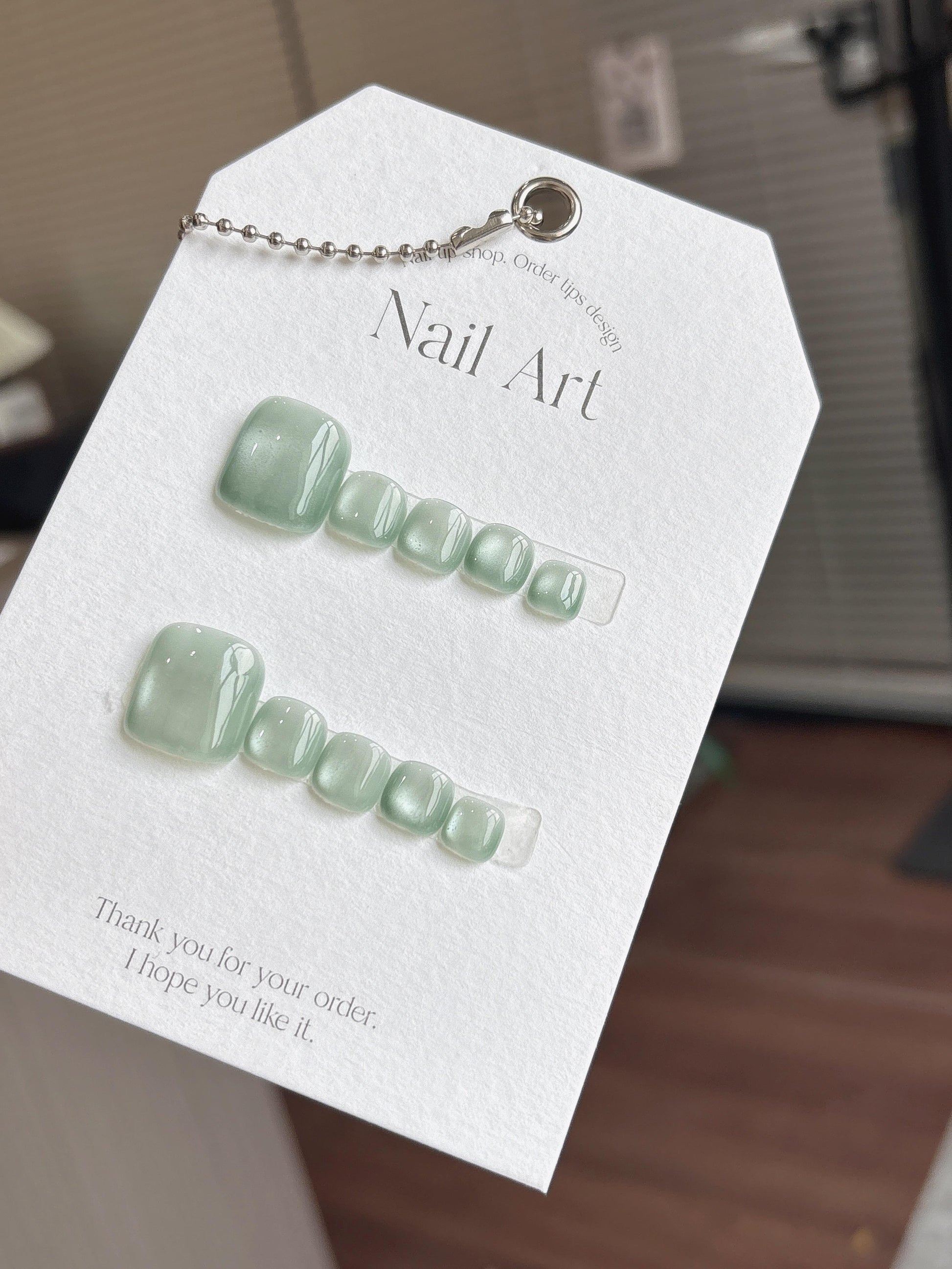 淡淡的薄荷綠色如晨間山嵐,帶有絲滑珠光質感,宛如腳尖沾染了一層清新的晨霧。簡約卻不單調,溫柔又療癒,讓你每一步都散發自然靜謐的氣息。