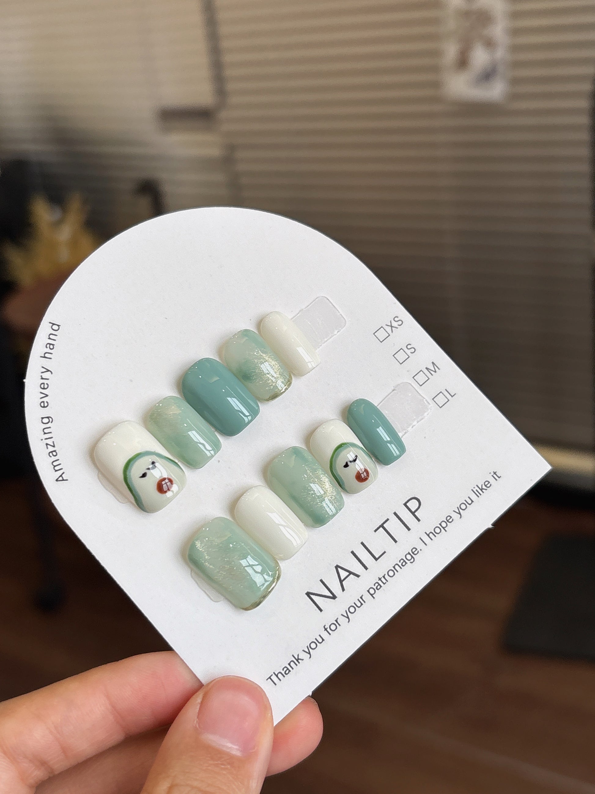 這款療癒系設計以抹茶與白奶霧感打底,加入柔和暈染與金箔層次,再以超可愛「厭世臉」表情手繪呈現,完全打中文青少女的心!低飽和配色舒服耐看,搭配一點點幽默感,讓你日常也能帶點「表情包系」氣質。