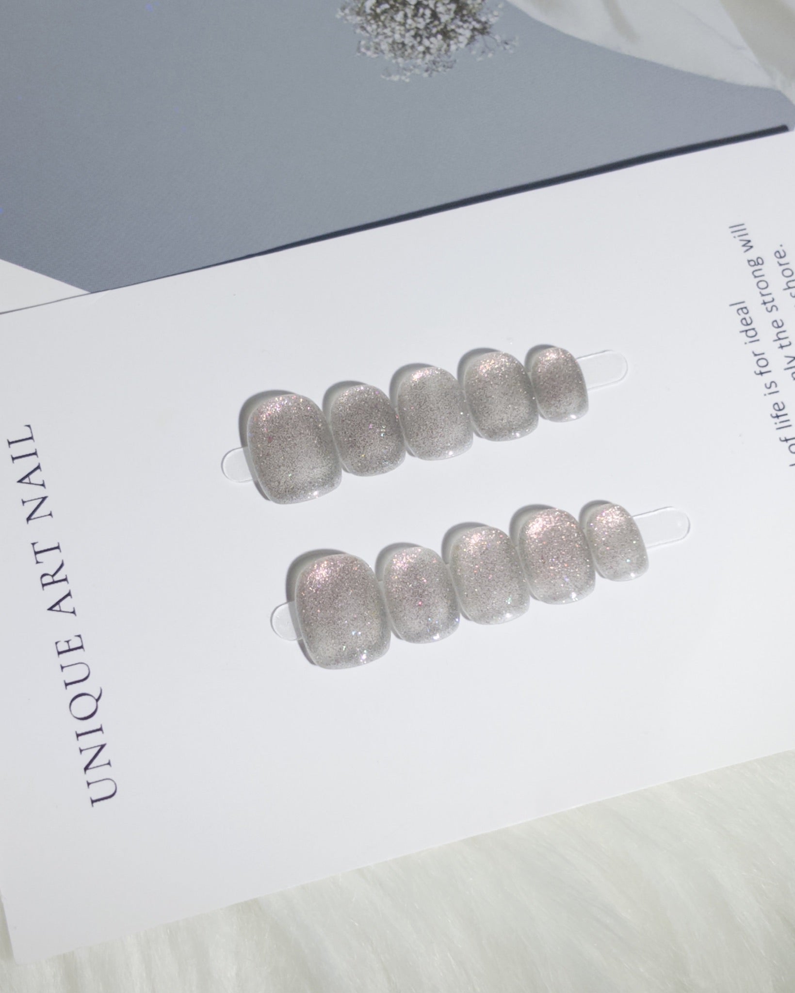 這款穿戴甲以閃耀的銀色為基調,如同夜晚的月光灑落大地,溫柔而閃耀 ✨。霧面質感中帶有細緻的微光,營造出低調奢華的氛圍,既神秘又優雅,無論是日常穿搭還是正式場合,都能完美融入,展現高級感 💎。