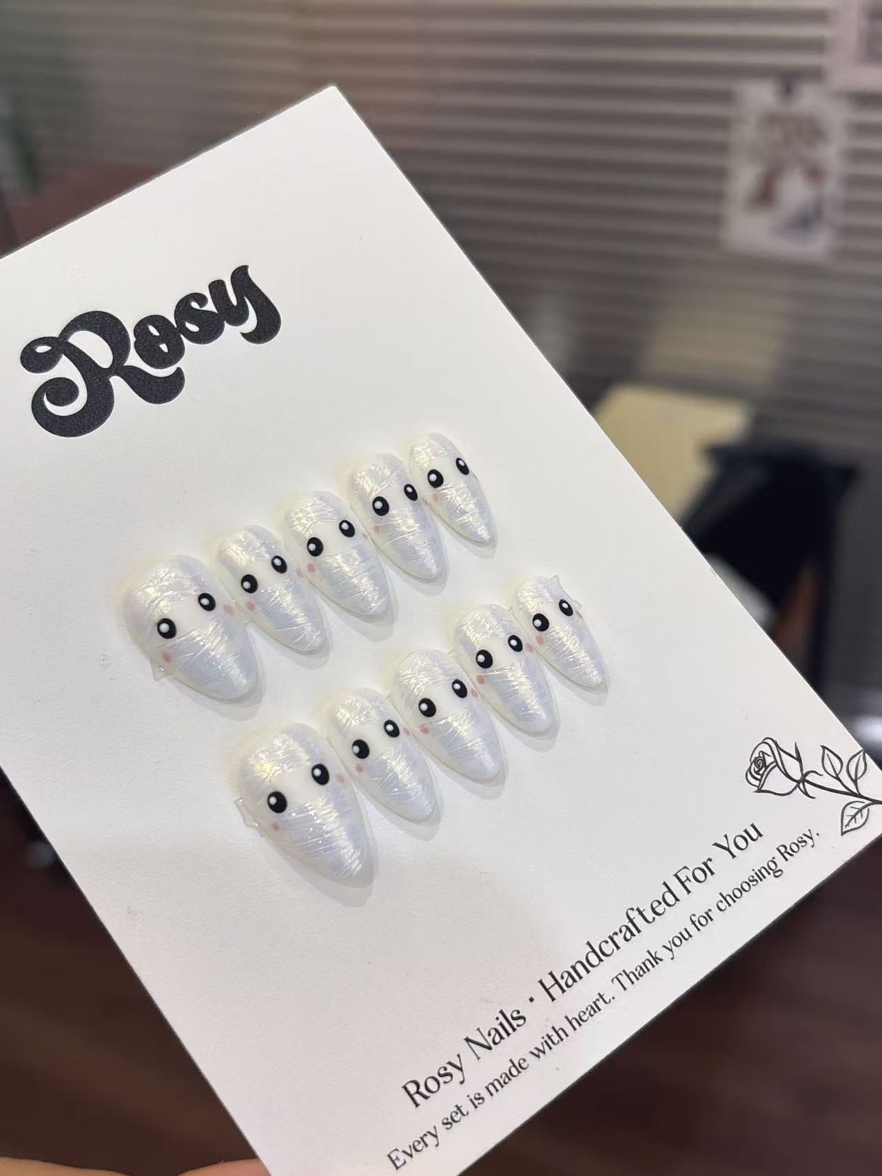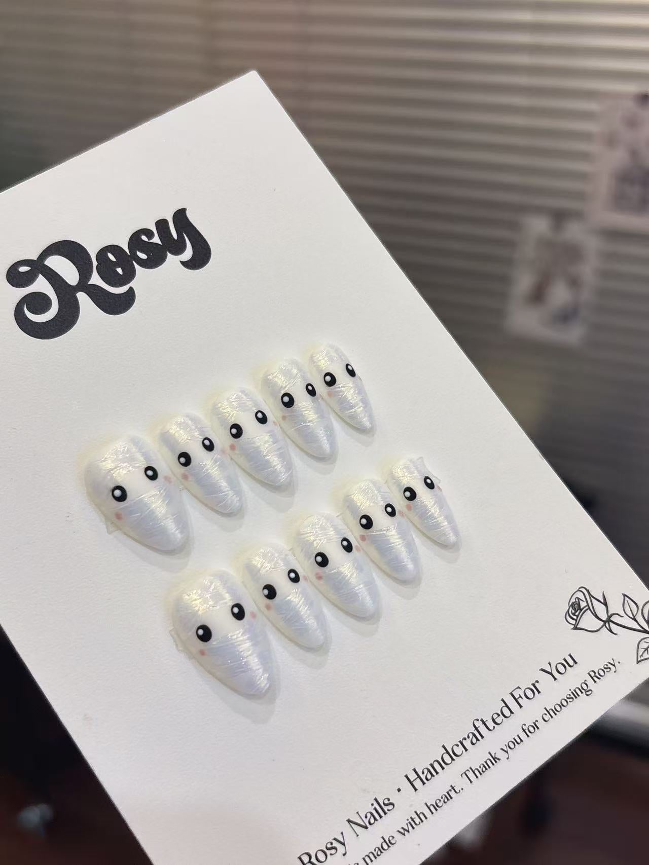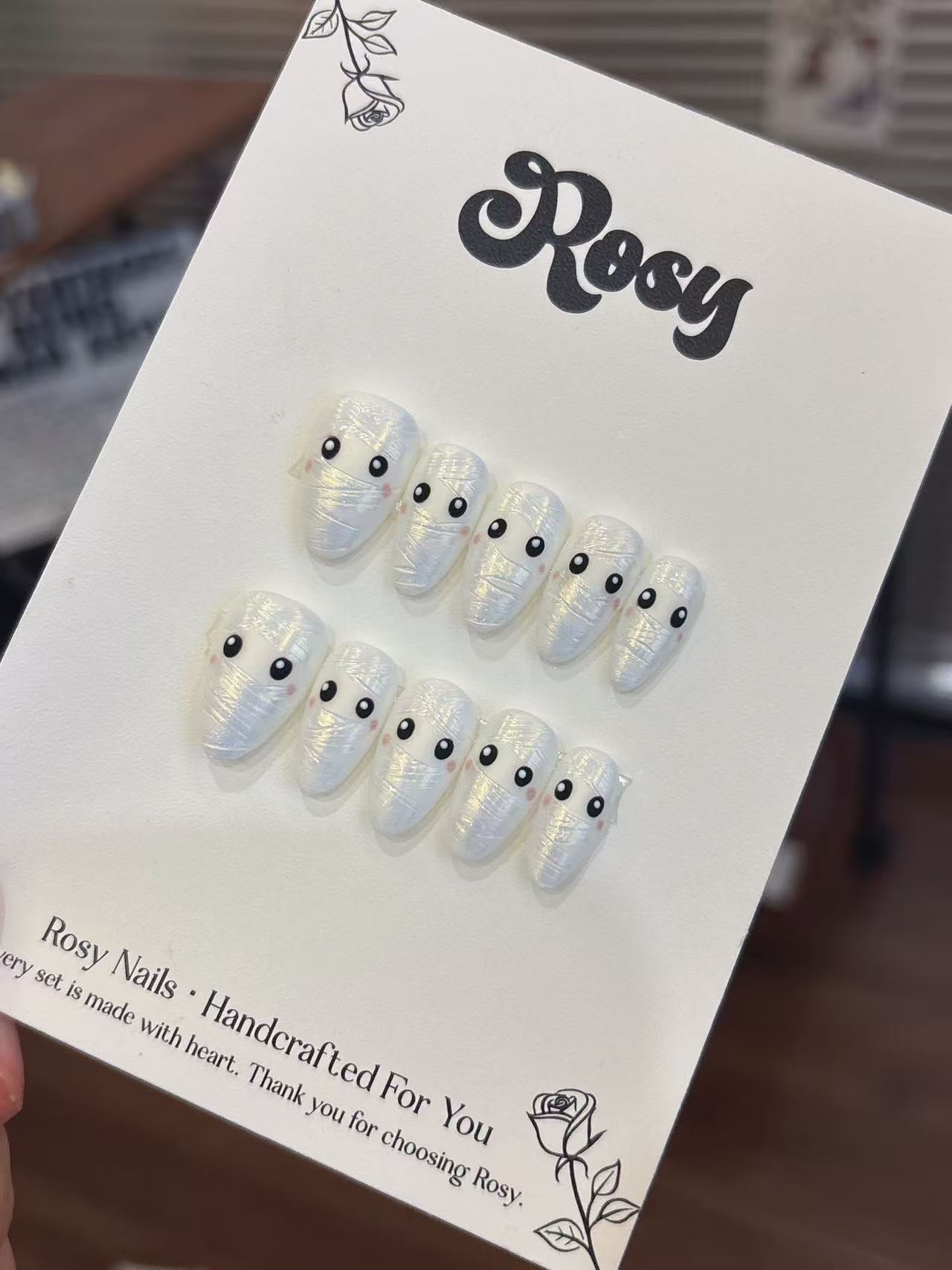 👻 木乃伊寶寶 · Mummy Cutie 描述|Description:超萌萬聖節限定造型!🎃以純白包紮線條打造木乃伊質感,搭配呆萌大眼與紅暈雙頰,既可愛又帶點節日搞怪氣息~穿戴上手立刻化身「可愛嚇人」的小木乃伊!🩷 特點|Features: 萬聖節限定造型 👻 手繪立體包紮紋理,細節滿分 🎨 呆萌眼神+紅暈雙頰,增添童趣 💫 適合派對、拍照、搞怪造型使用 📸