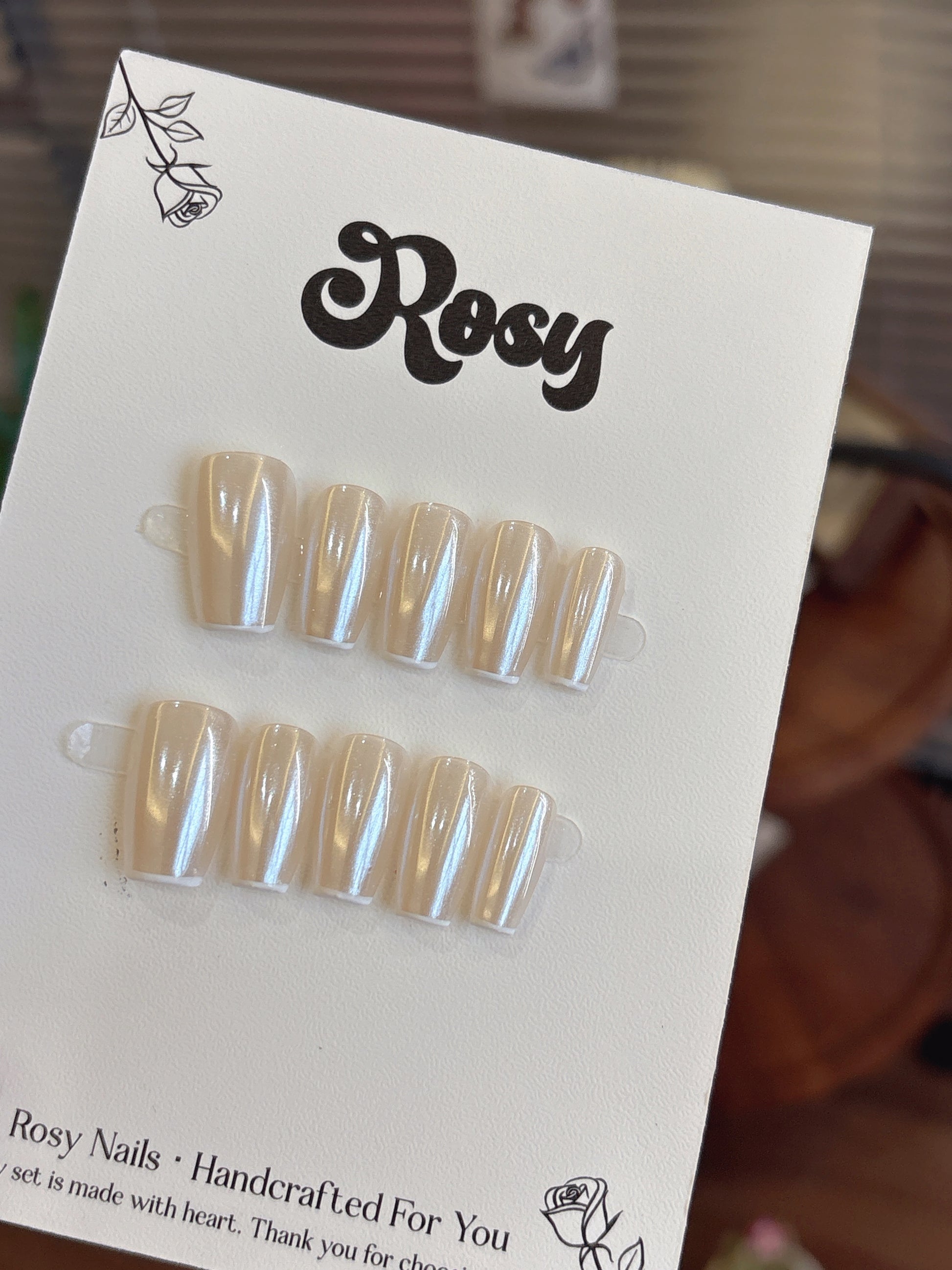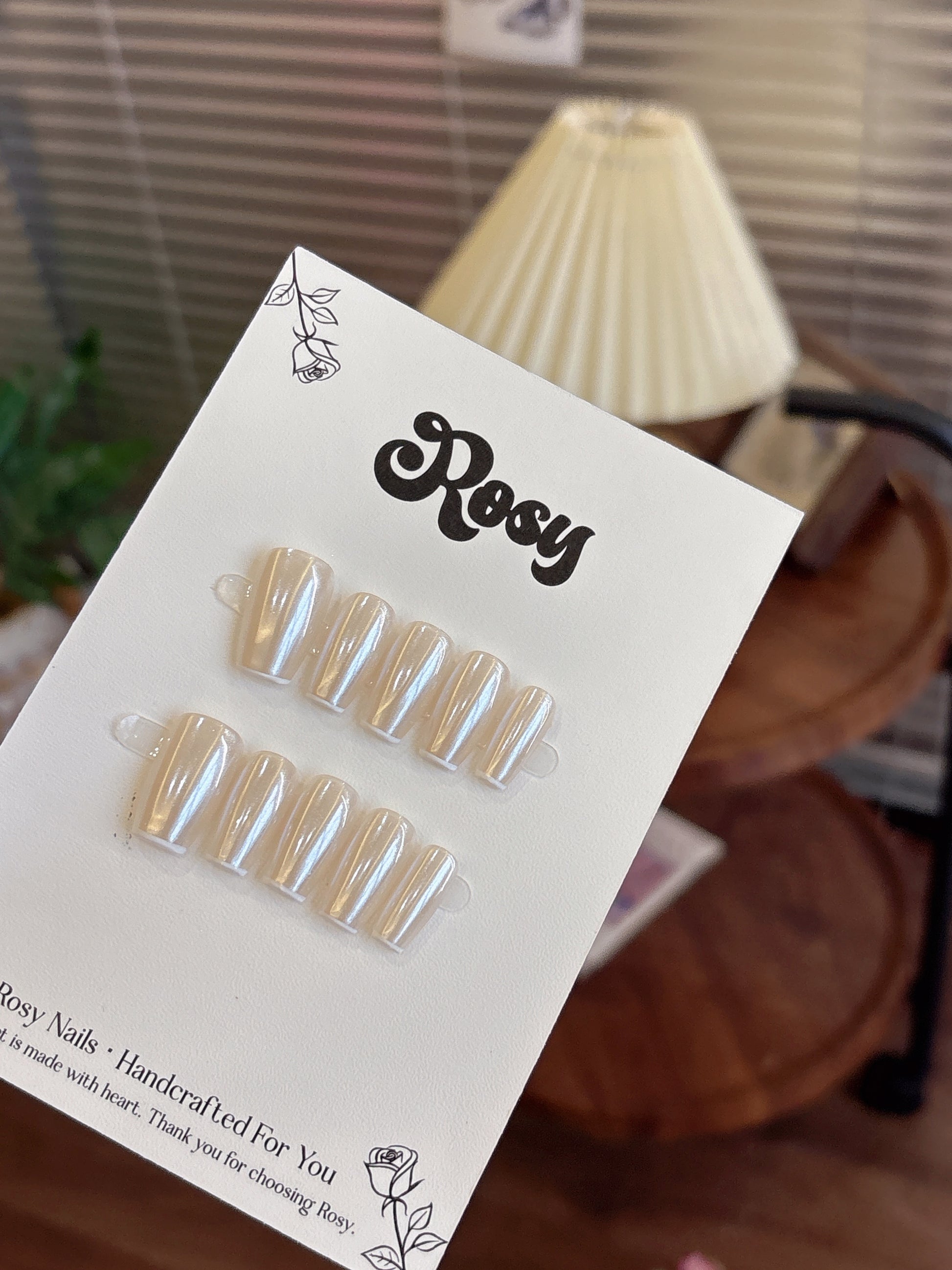描述:低調奢華的奶白珍珠色,帶有柔和的珍珠光澤,隨光線流動閃爍著淡雅光彩。簡單卻極具質感,適合任何場合,讓指尖散發典雅氣質。