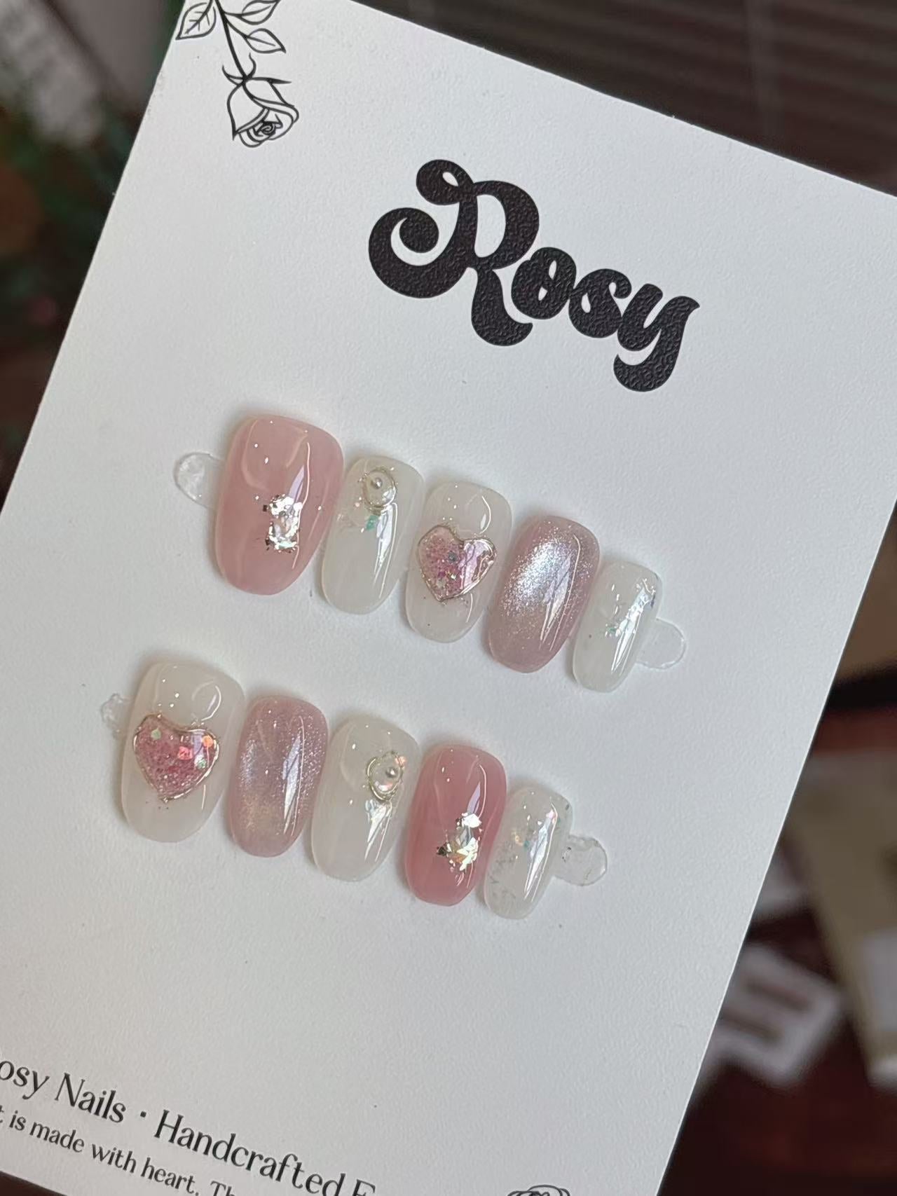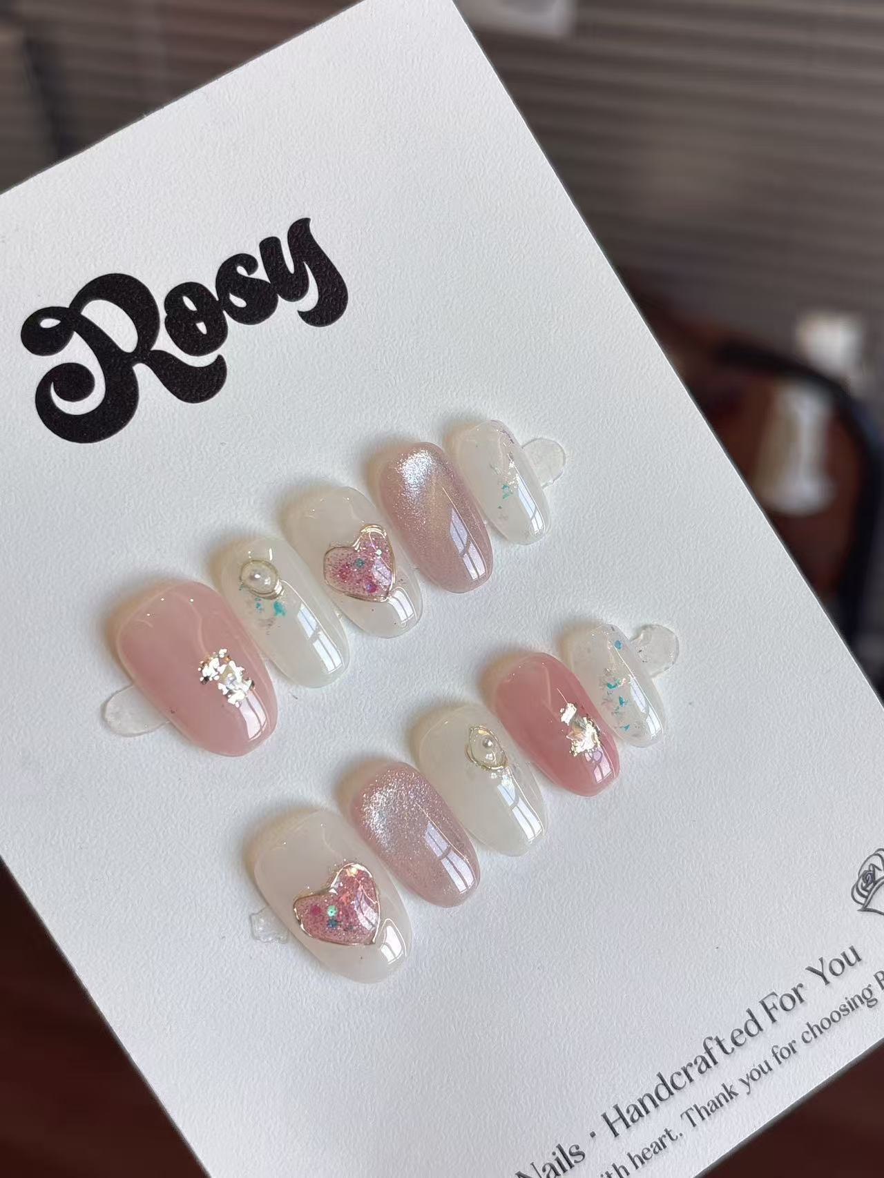 Rosy每副穿戴甲獨一無二,顏色深淺、紋路、飾品大小皆有少許差異