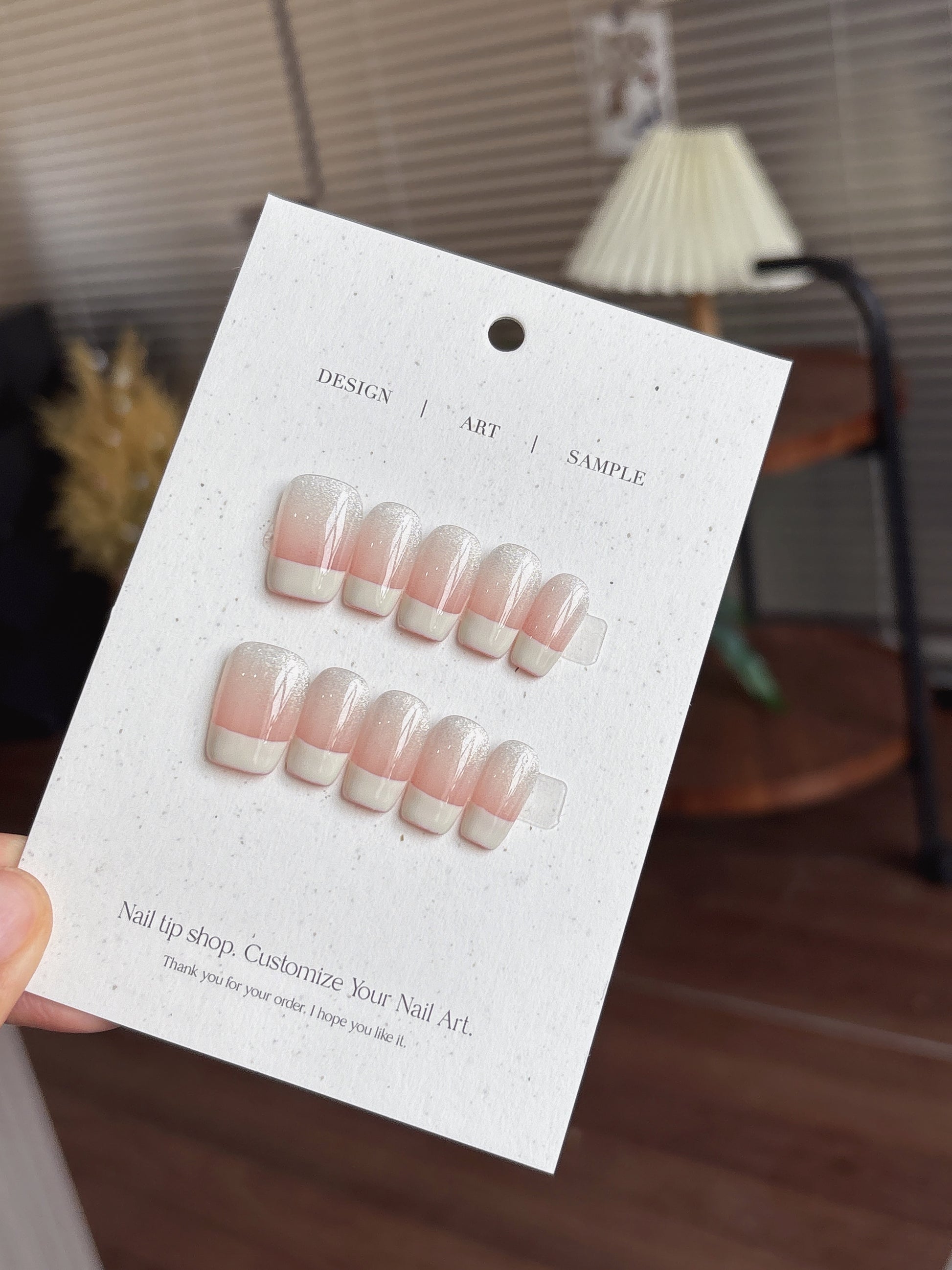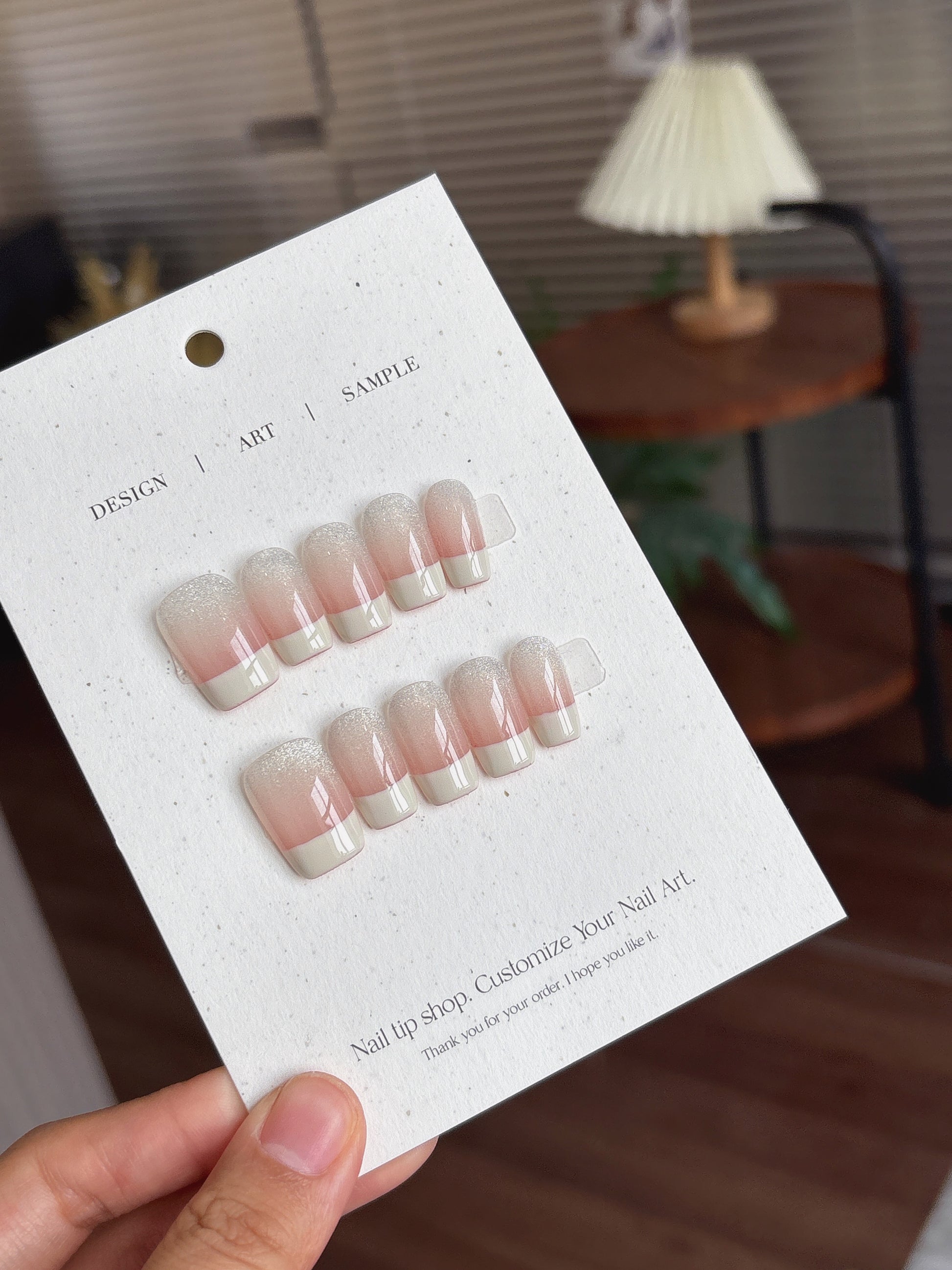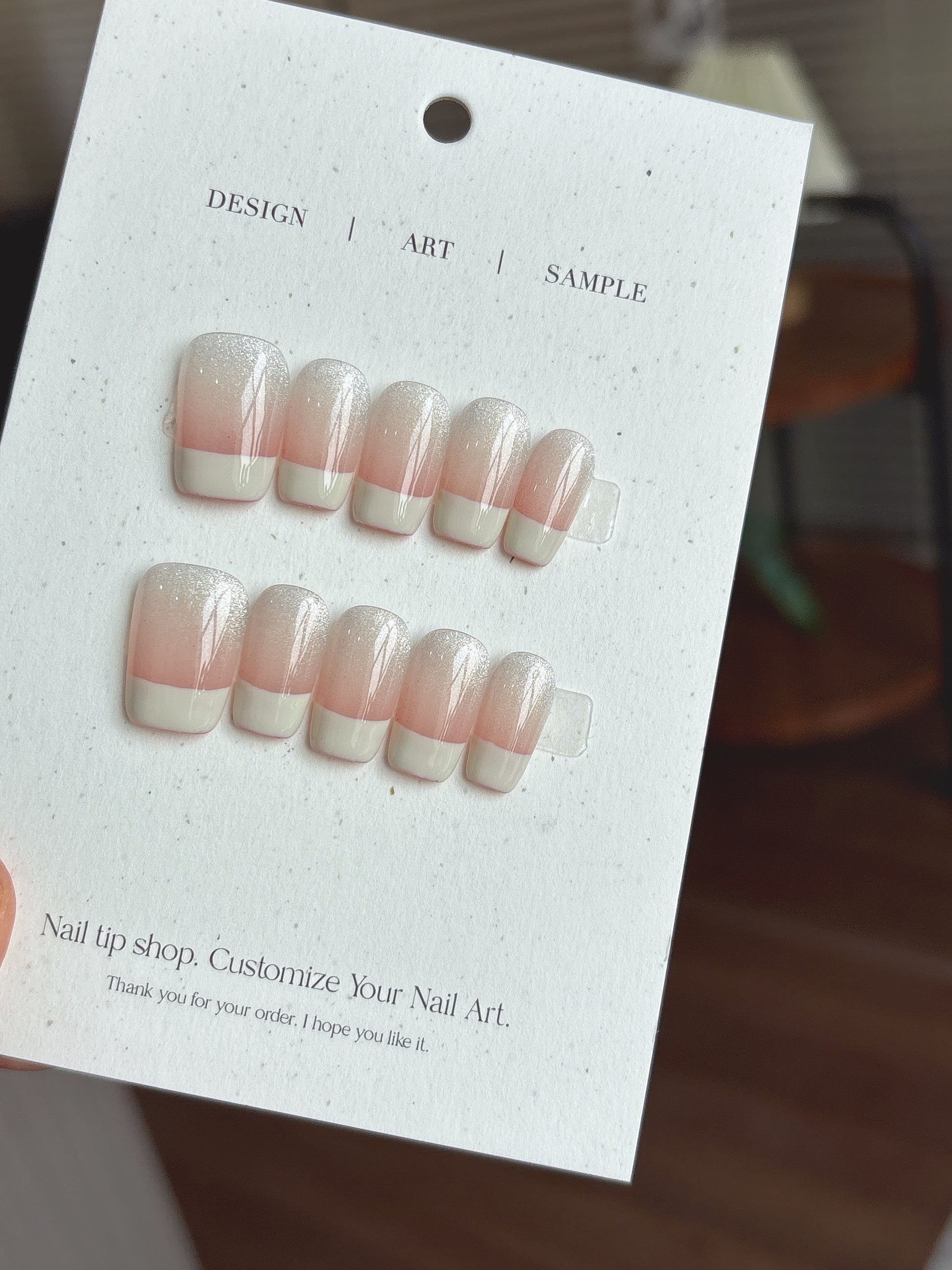 🌸 設計元素:漸變粉白、微閃珠光、簡約法式感