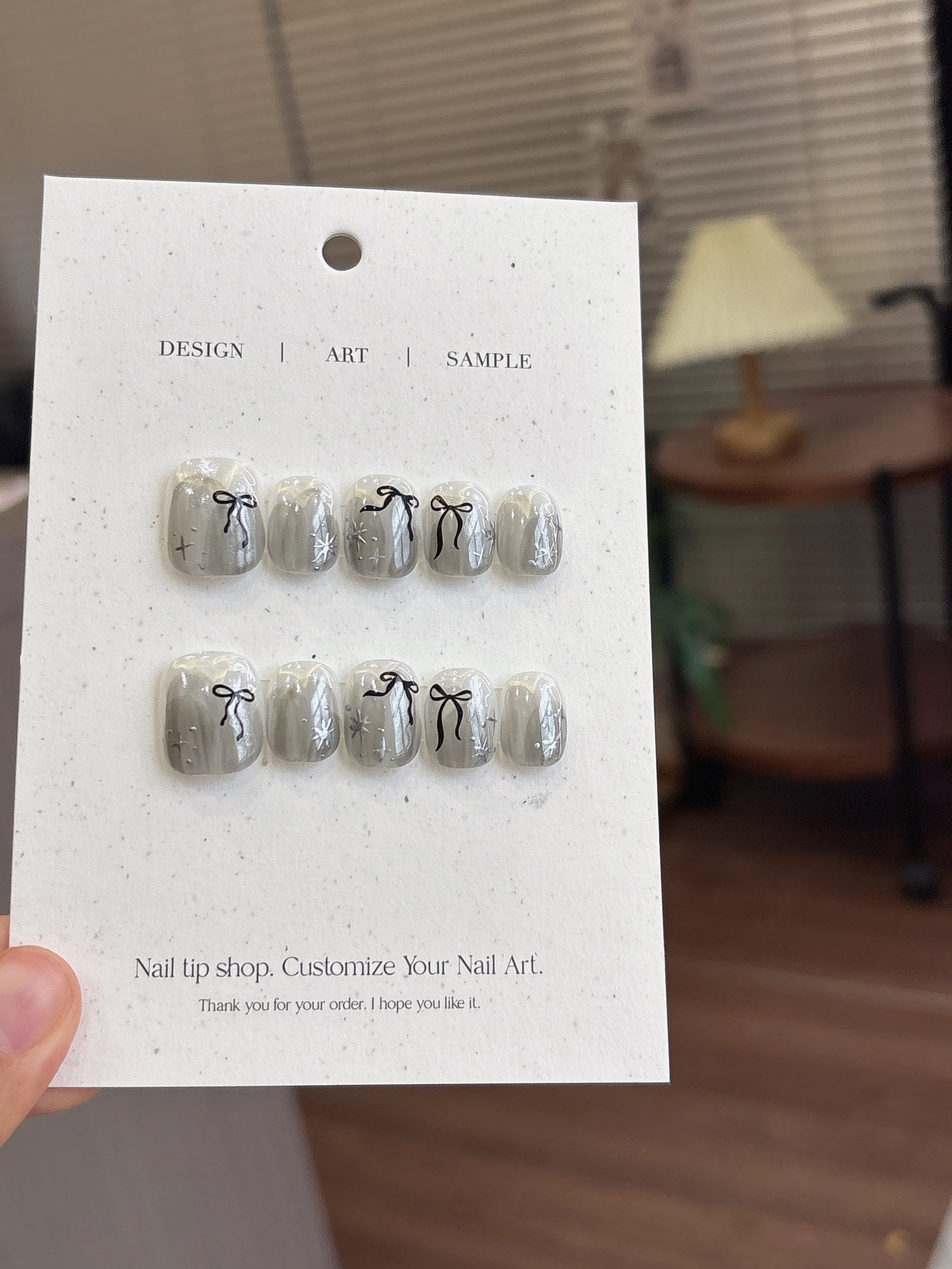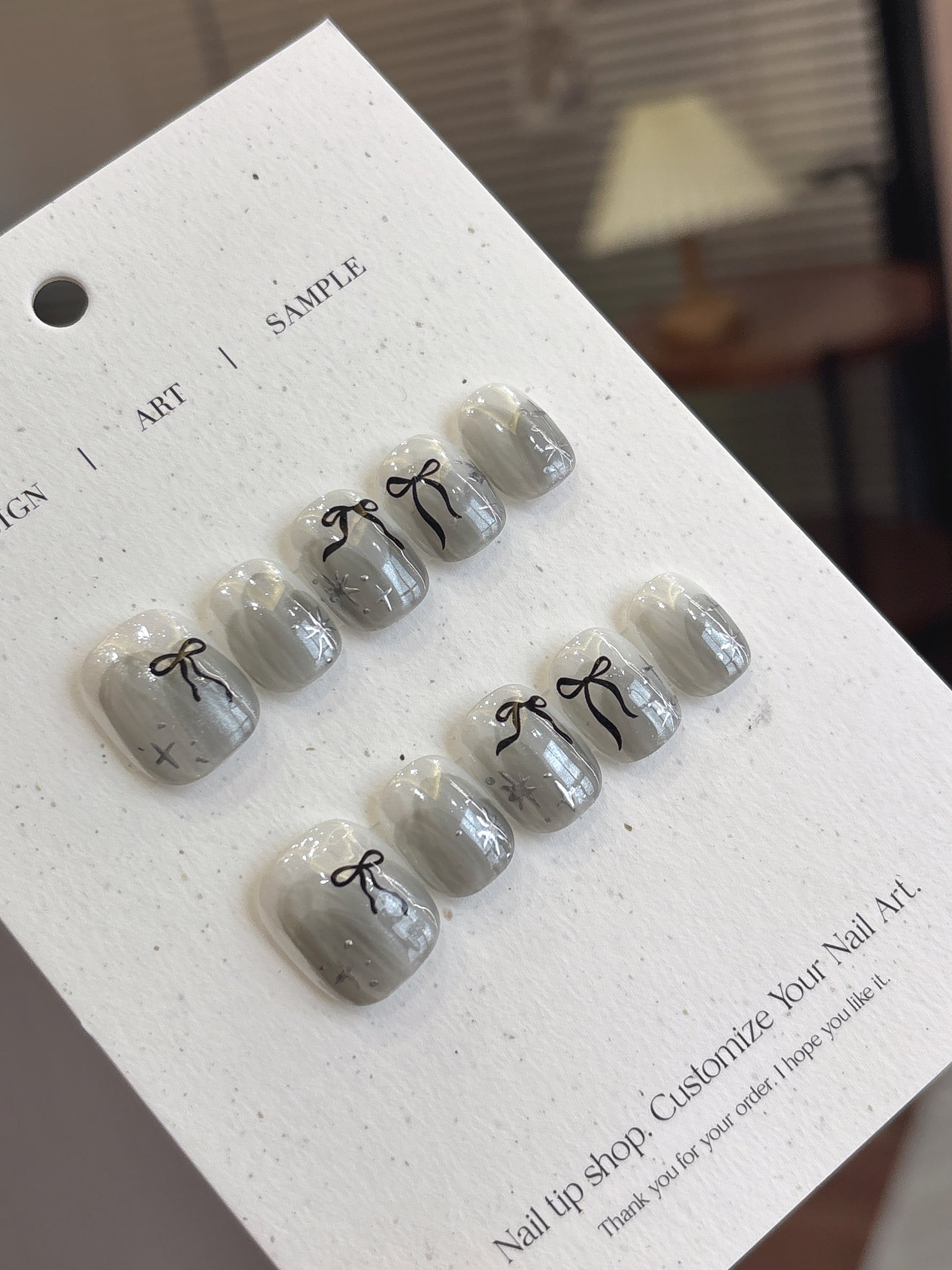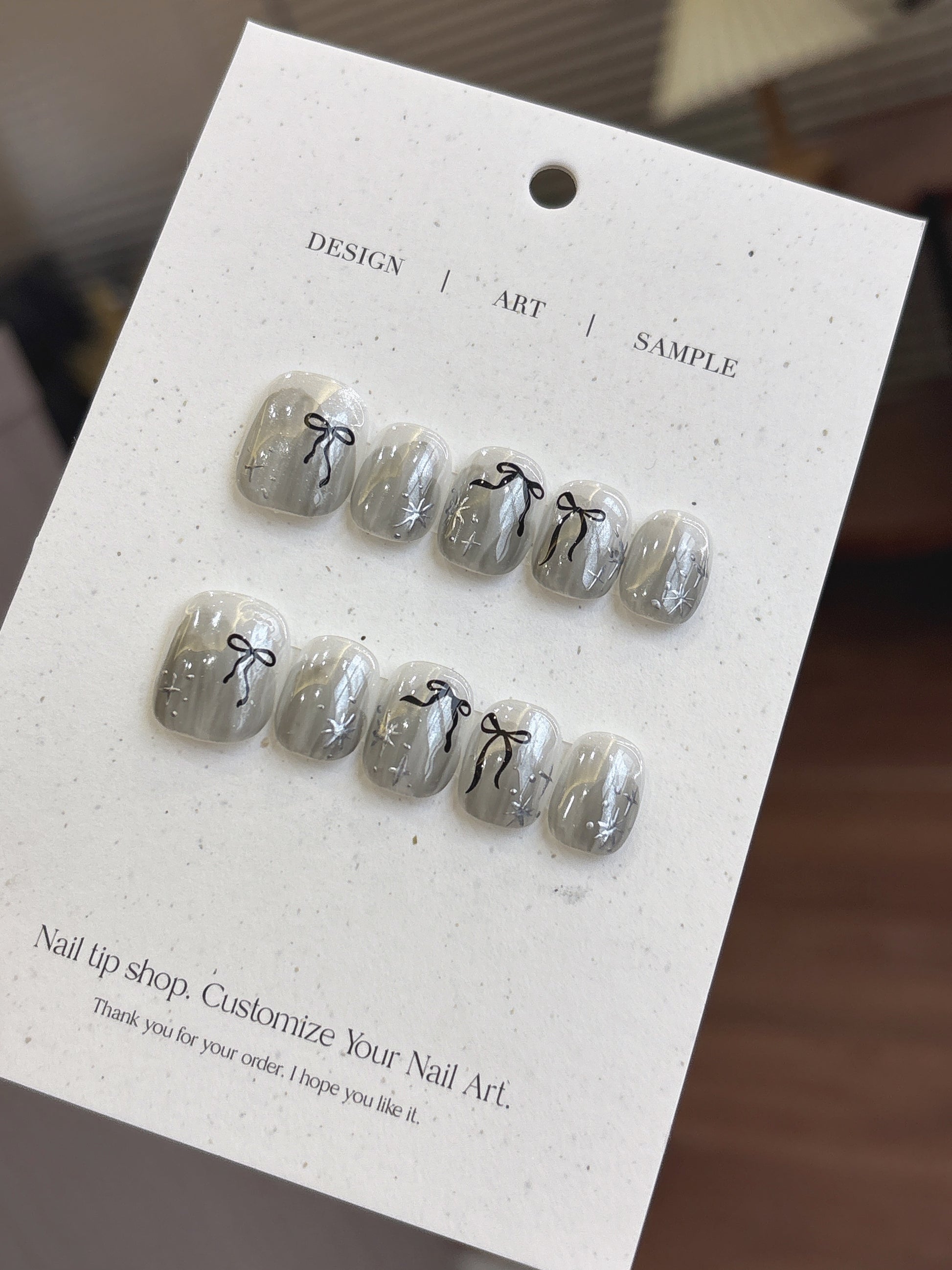 如同傍晚天空中瀰漫的柔光霧灰,融合細緻閃爍的珍珠感底色。俏皮蝴蝶結與星芒點綴其中,為整體增添一抹靈動的可愛。優雅而不失個性,是知性女孩們的低調亮點選擇。